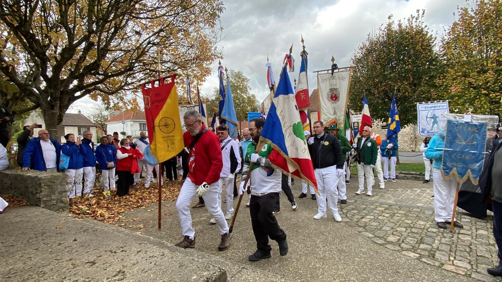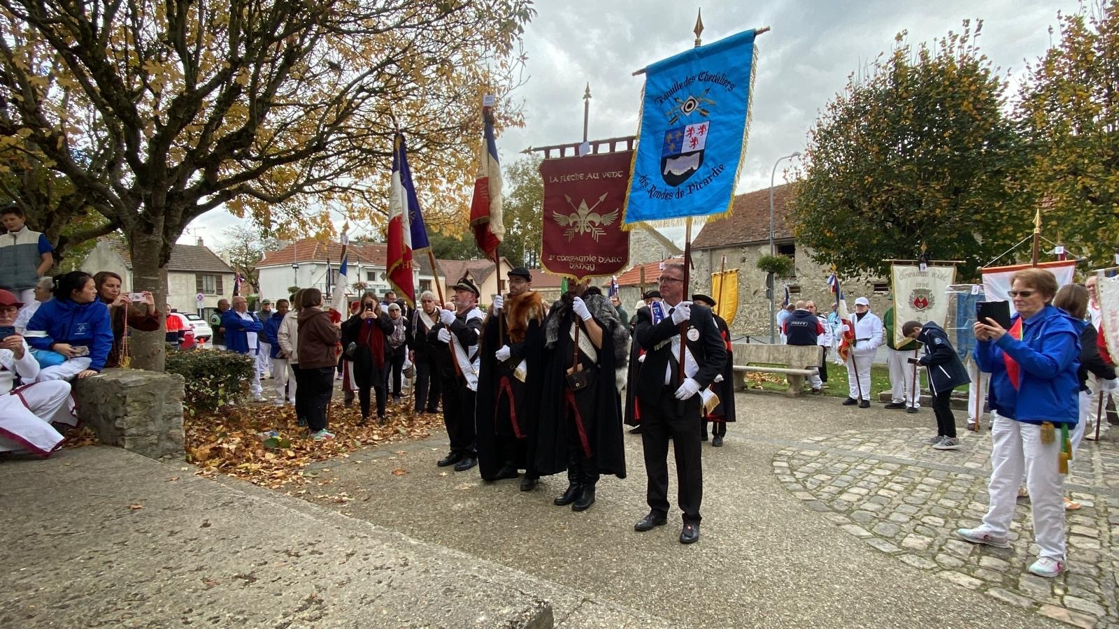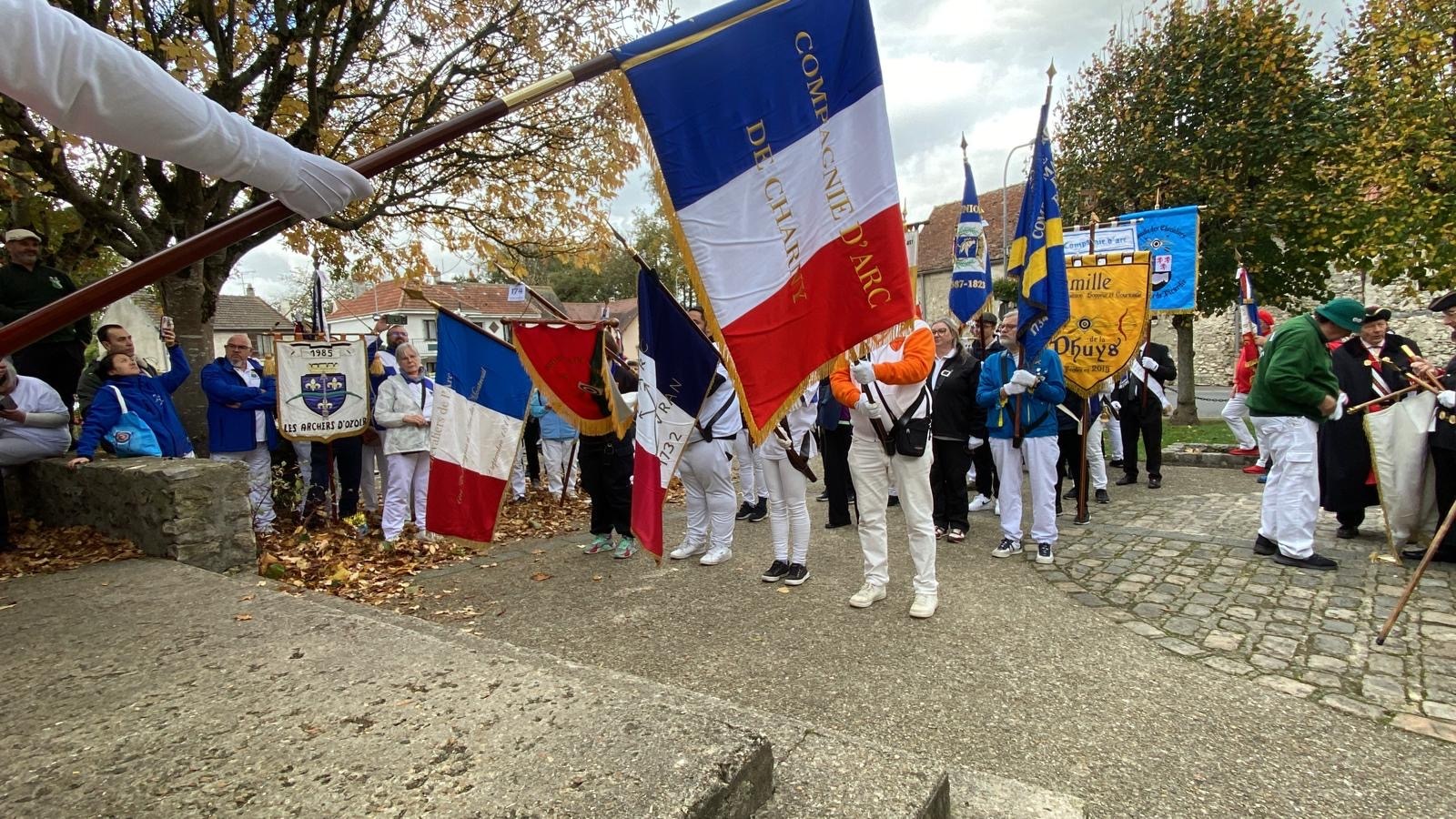 L’après-midi a débuté à 13h avec un accueil convivial, suivi du défilé de 43 drapeaux et de 120 archers, symbole fort de l’unité et du respect des coutumes. Les archers ont ensuite effectué le tir de réveil sur la cible aux couleurs de la compagnie de Charny, moment chargé d’émotion et de fraternité.
