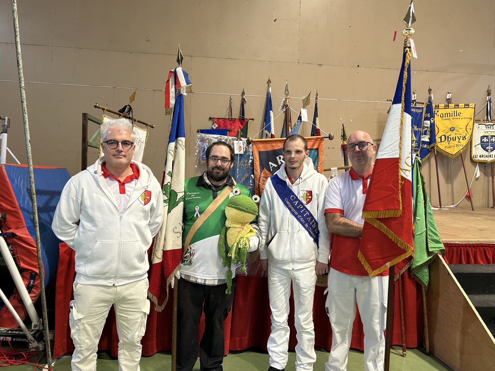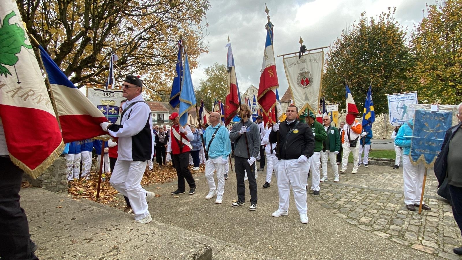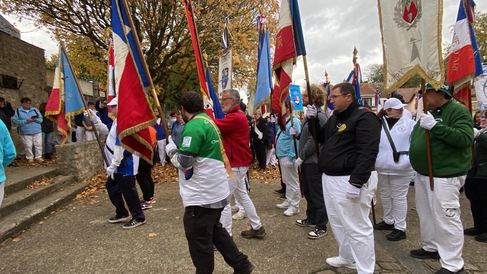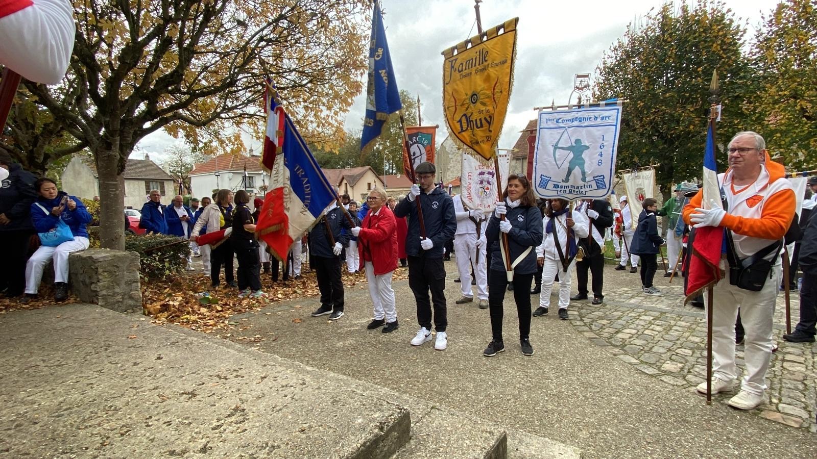 L’après-midi a débuté à 13h avec un accueil convivial, suivi du défilé de 43 drapeaux et de 120 archers, symbole fort de l’unité et du respect des coutumes. Les archers ont ensuite effectué le tir de réveil sur la cible aux couleurs de la compagnie de Charny, moment chargé d’émotion et de fraternité.