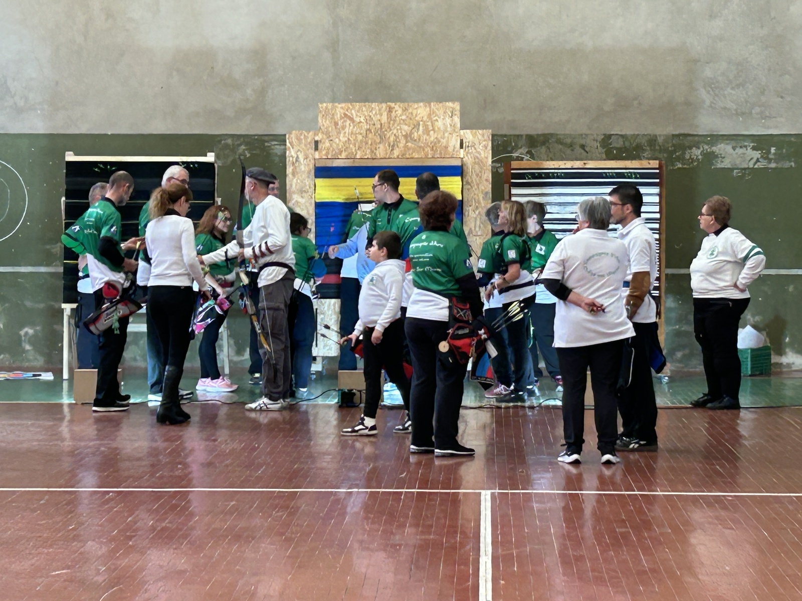 Le mauvais temps n’a pas découragé les archers : ils se sont repliés dans le gymnase pour réaliser le serment.