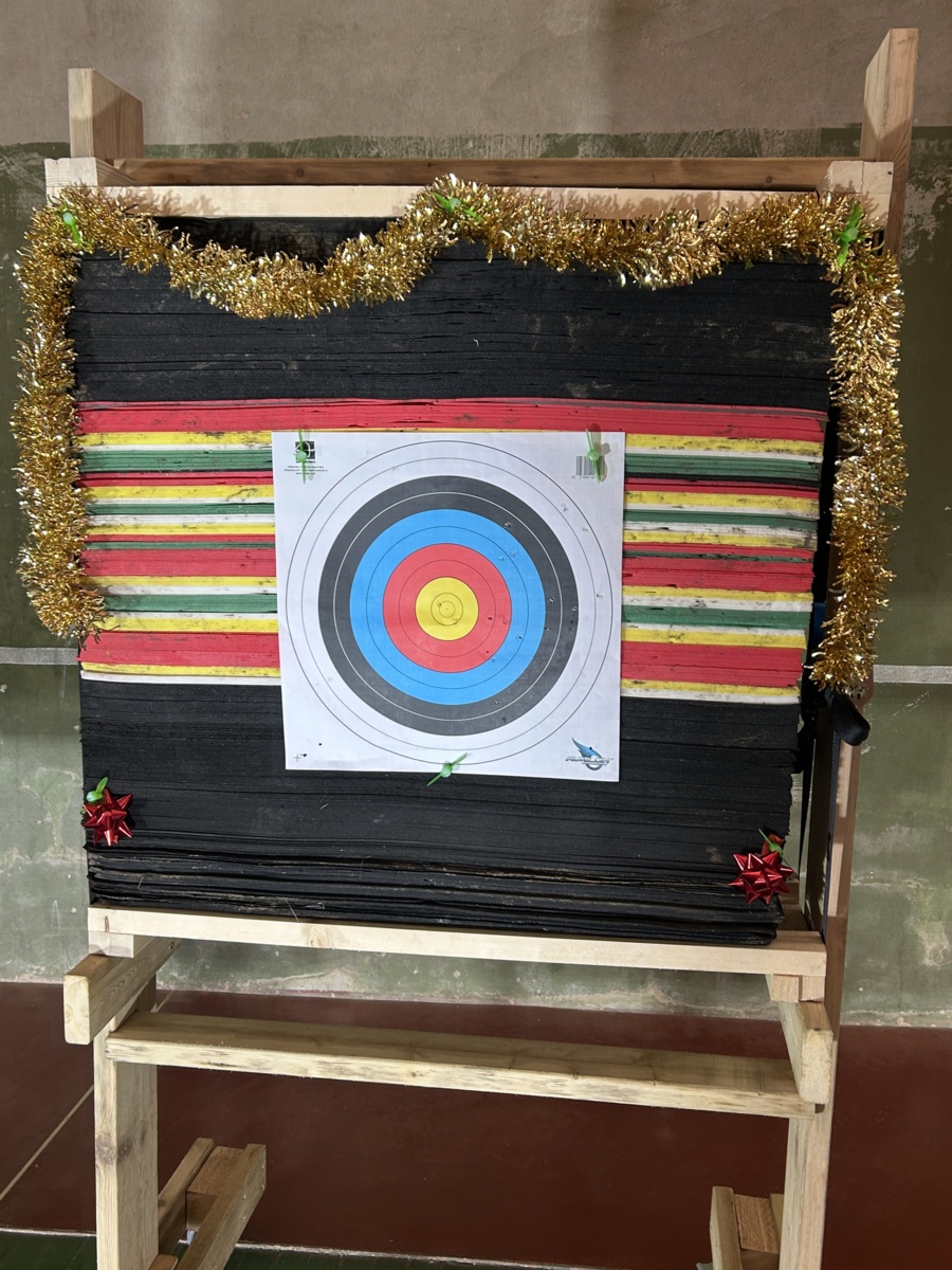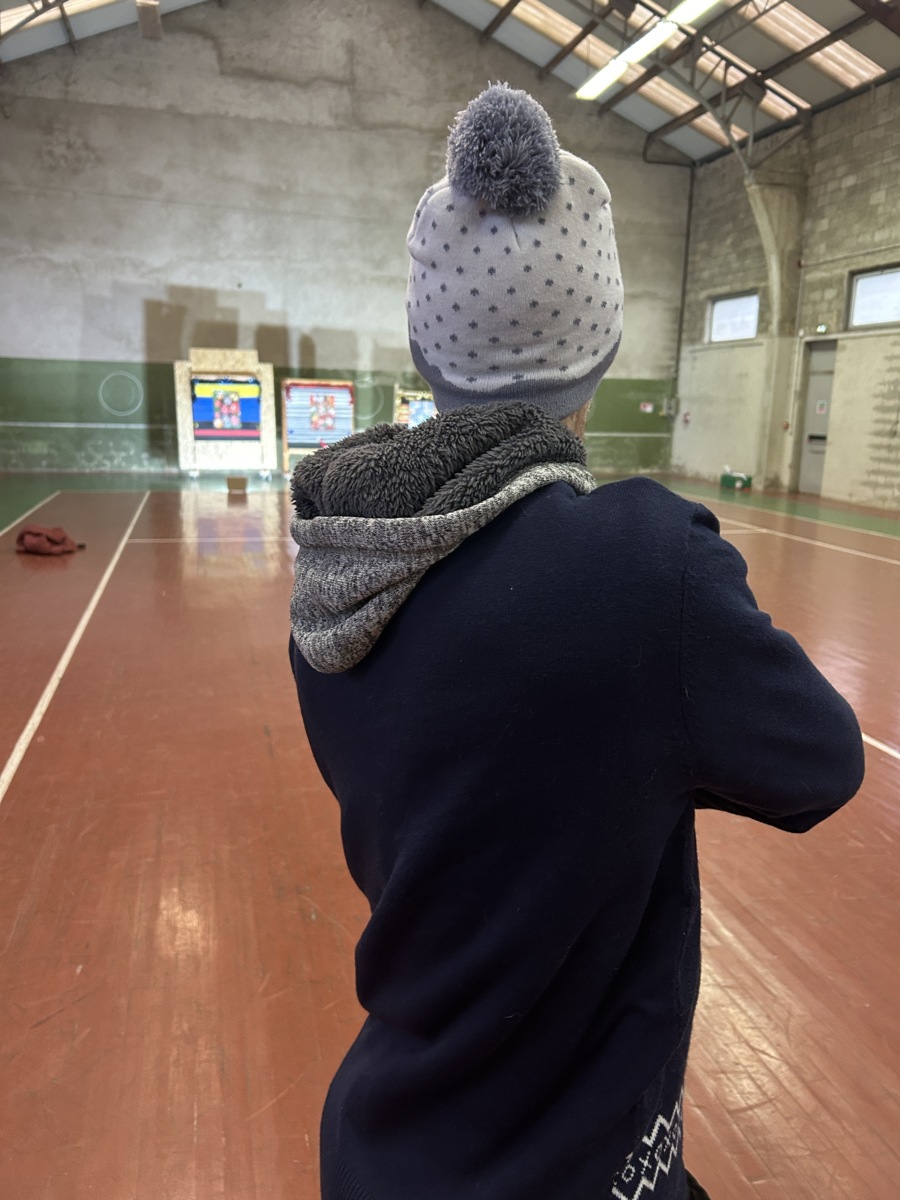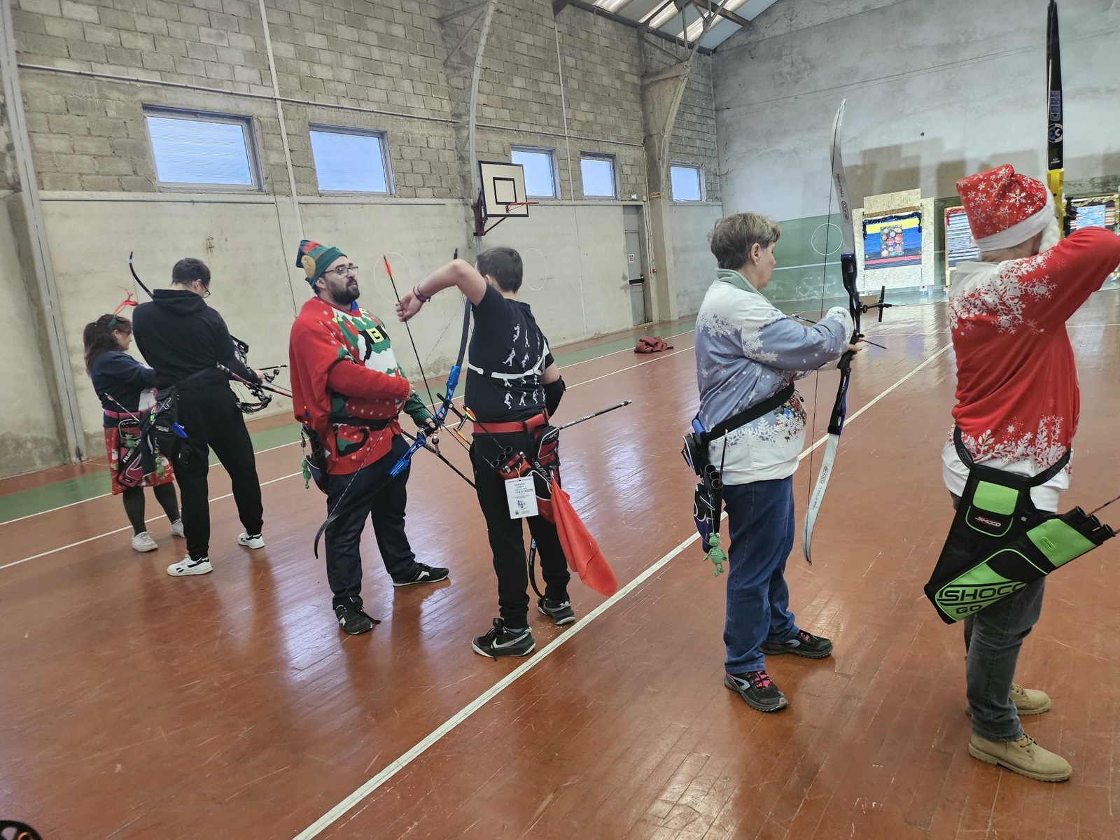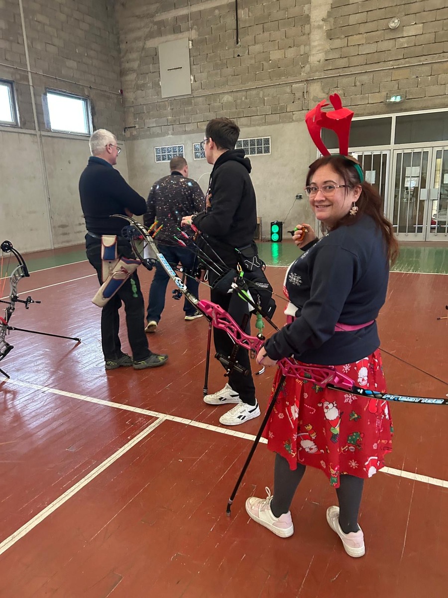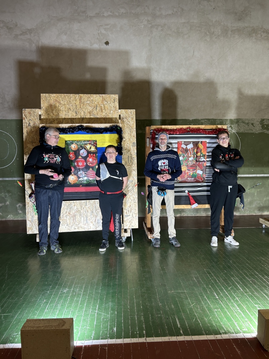 Trois équipes ont rivalisé sur les cibles de Noël, soigneusement décorées pour l'occasion. Elles ont visé des chaussettes, des boules et le calendrier de l'Avent sous le regard de nos arbitres de Noël (Laurent, Laurence et Jessica). Une ambiance festive et amicale a raisonné dans le gymnase.