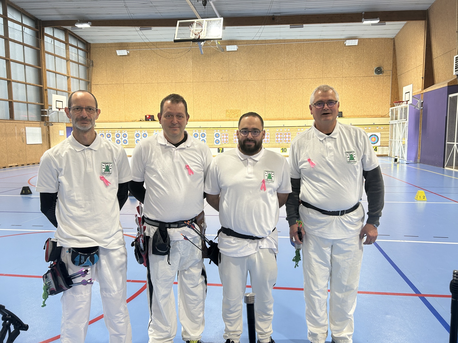 Laurent, Didier, Philippe et Antho sont allés tirer leur premier concours en salle à Soissons le samedi 12 octobre 2024. Ce concours était au profit d'octobre Rose.